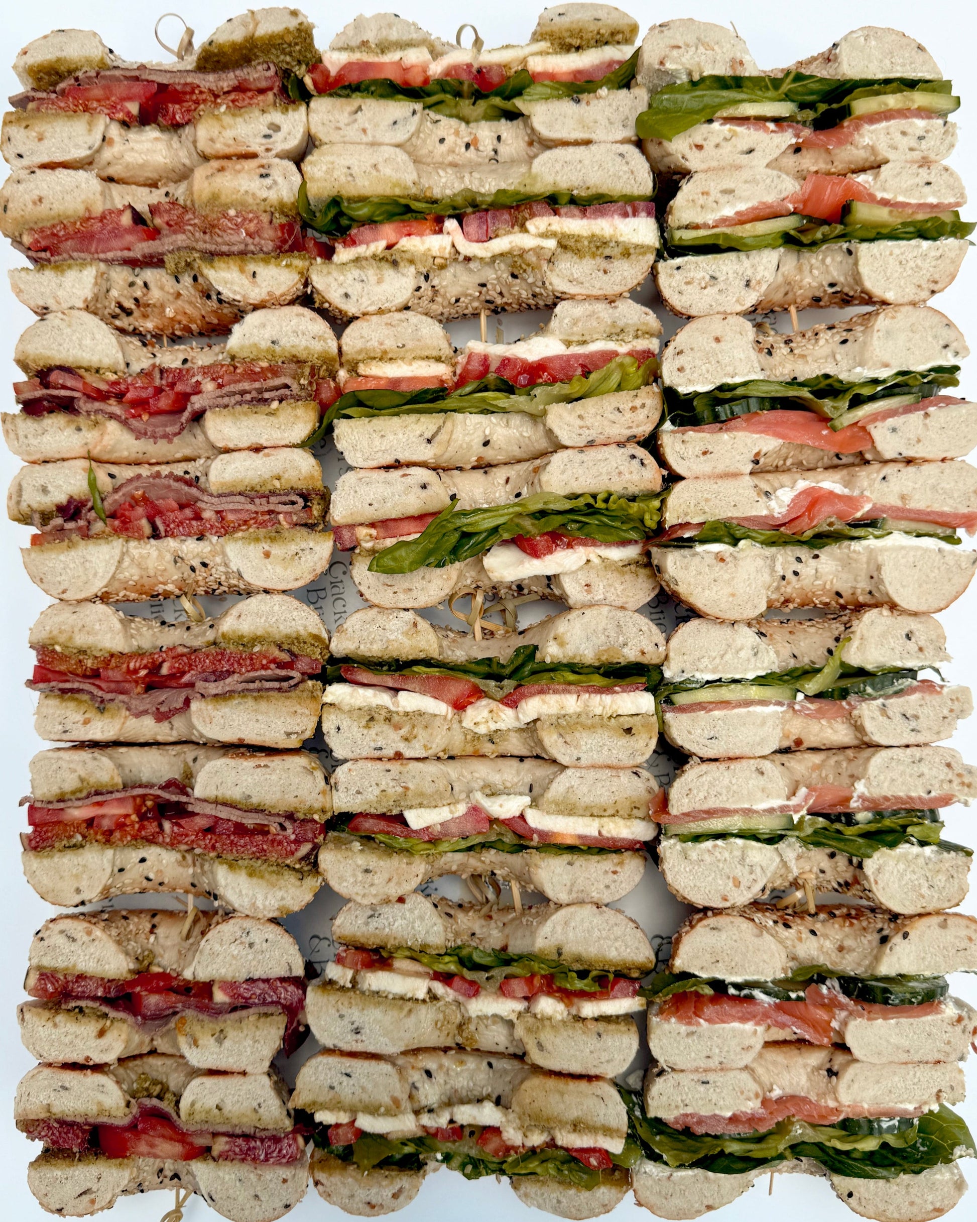 Our bagel platters are designed to delight every guest and can be adapted to suit vegetarians. Perfect for meetings, celebrations, or adding a touch of luxury to lunch.